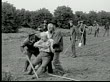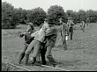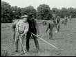 1913 WS B&W older man collapsing as he works in field/ men catching him/ police officer pointing - stock video