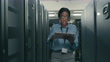 4k video footage of a young technician using a digital tablet while performing a maintenance check in a server room - 4K stock video