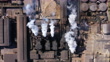 Aerial view of a chemical factory with smoking chimneys air pollution.Environmental Issues, World at work drone view concept. - 4K stock video