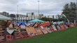 An encampment has been established at the University of British Columbia in Vancouver, BC on June 01, 2024. Despite its large size, the encampment appears mostly empty with approximately a dozen people present during the evening hours. The protesters present declined to speak on camera or answer questions, stating that only a select few individuals were authorized to speak, none of whom were on site at the time. Access to the inside of the encampment, which is fenced off, is currently restricted. The video provides a visual overview of the encampment and its surroundings.