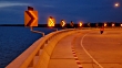 Time lapse : Arrows on LED traffic arrow signs with solar energy are moving.