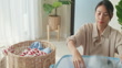 Beautiful young Asian woman doing laundry at home. Activity of daily living at house. - 4K stock video