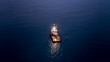 A fishing boat in the middle of the ocean.