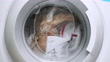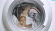 Washing Machine,White Color,Washing,Laundry,Clothing, Close up view porthole of washing machine. Washing clothes process in slow motion