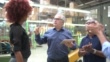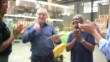 Coworkers celebrating some good news in a factory