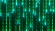 Digital background, binary code black and green background with digits moving on screen, Concept of digital age. Algorithm binary, data code, decryption and encoding, row matrix.