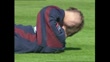 World Cup qualifiers: England squad training; ENGLAND: Buckinghamshire: Bisham Abbey:EXTMatt Le Tissier on ground doing stretchesGVs England team training, doing running drills, including close shots of Paul Gascoigne, David James, Les Ferdinand / Glenn Hoddle (Manager) watchingPlayers doing shooting practice including Paul GascoigneSquad includes: David Seaman, Gary Neville, Stuart Pearce, Paul Ince, Gareth Southgate, Andy Hinchcliffe, David Beckham, Paul Gascoigne, Alan Shearer, Les Ferdinand, Steve McManaman, Gary Pallister, Sol Campbell, Ian Walker, David Platt, Matt Le Tissier, Teddy Sheringham, Nick Barmby, Graeme Le Saux, David James