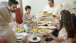 Family conversing as they enjoy Eid-Ul-Fitr celebration meal - 4K stock video