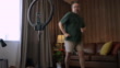 Happy male vlogging recording dance broadcast on social media ,Man Dancing at Home Living Room, Fun Celebrating Funny Viral Dance Freedom Weekend. asian male try to pratice dance for viral video streaming broadcast on smartphone - 4K stock video