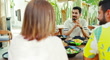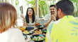 Middle Eastern couples conversing during outdoor dining - 4K stock video