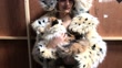 LONDON, ENGLAND - FEBRUARY 20: A model holds a cat backstage ahead of the Yuhan Wang show during London Fashion Week February 2022 on February 20, 2022 in London, England. (Footage by Tristan Fewings/BFC/Getty Images for BFC)