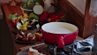 Preparing Swiss Cheese Fondue in a Pot Served with Bread