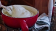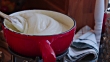 Preparing Swiss Cheese Fondue in a Pot Served with Bread