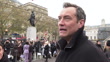 Film: 'Star Wars Skeleton Crew' photocall; ENGLAND: London: Trafalgar Square:EXTGVs of 'Star Wars Skeleton Crew' photocall and interviews Jude Law (Actor, 'Star Wars Skeleton Crew' - Jod Na Nawood), Ryan Kiera Armstrong (Actor, 'Star Wars Skeleton Crew' - Fern), Kyriana Kratter (Actor, 'Star Wars Skeleton Crew' - KB), Robert Timothy Smith (Actor, 'Star Wars Skeleton Crew' - Neel), Ravi Cabot-Conyers (Actor, 'Star Wars Skeleton Crew' - Wim)Jude Law interview SOTGVs Jude Law signing autographs / signing autographs for people dressed up as Star Wars charactersJon Watts & Christopher Ford interview with other reporter slightly heard SOT